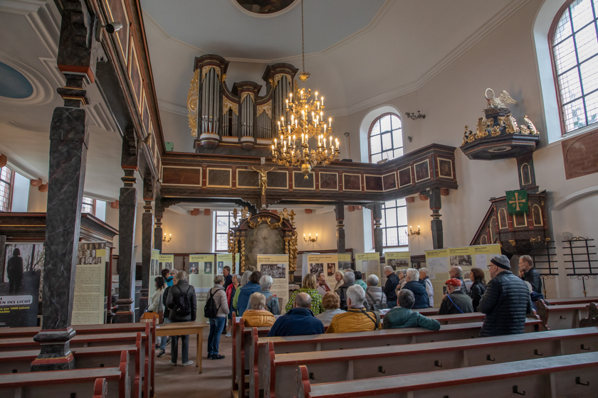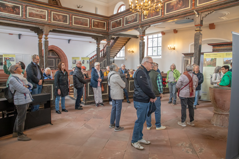 In der kleinen Barockkirche konnten die Teilnehmenden außerdem die Loge der ehemaligen bayerischen Königin Therese bewundern. Besonders hervorzuheben ist der kürzlich restaurierte „Thronsessel“, der an die Besuche der Gemahlin von Ludwig I. erinnert. Ab 1852, als die Pfalz noch zum Königreich Bayern gehörte, wohnte Königin Therese während ihres Aufenthalts in der nahegelegenen „Villa Ludwigshöhe“ regelmäßig den protestantischen Gottesdiensten in der St. Georgskirche bei.